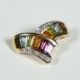 zentral variierende Farbsteine in Baguetteschliffen, Kanalfassung, flankiert von 8 Diamantsplittern (zus ca 0,12ct), Beschau, zus ca 9,41gr 585er GG total, 2 x 1,8