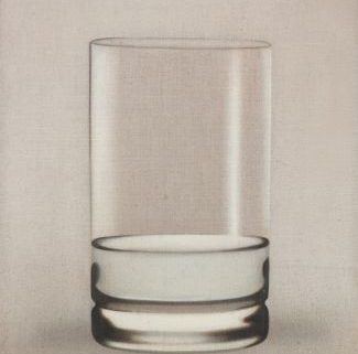 zeitgenössischer Künstler/in, Öl/Rupfen, Fotorealistische Darstellung eines Glases, 68 x 59,5 cm, Schattenfugenrahmen