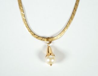 Italien, 585er-Flachpanzerkette, Karabinerverschluss, 750er-Ringöse und -Goldanstoß, L Kette 40 cm, L Anhänger 2,5 cm, je Beschau, 1x MZ, zus ca 6,29gr Gold total