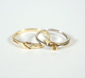 Konvolut von 2, je Diamantsplitter, 1x Bicolor, 1x MZ, je Beschau, zus ca 2,98gr 585er Gold total, Ringgröße 50 und 59