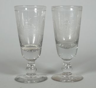 farbloses Glas, je in der Wandung Freimaurersymbole, H. 16 cm, leichte Gebrauchsspuren