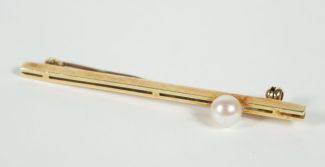 endig Perle, L. 6,2 cm, Beschau, ca 5,56gr 585er Gold total, Nadel verbogen