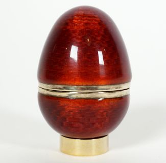 Manuf. Renato Salimbeni/Florenz, allseits rote Guilloche-Emaillierung, Innenvergoldung, klappbar mit Schnappverschluß, Standring, MZ, Beschau, total ca. 60g 925er-Silber, über alles ca. 5,2 cm