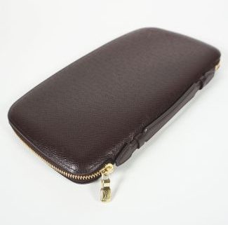 Herst. Louis Vuitton/Paris, Taiga Leder Kuh bzw. innen Kalb, dunkelbraun, Reisverschluss, Innenfach mit Reisverschluss, Fächer, Stifthalter, ca. 27 x 15 x 2,5 cm, neuwertiger Zustand, orig Karton, dieser besch.