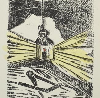 Holzschnitt, „Lichteinbringung“, unten links betitelt und bez „i.O. Plaue“, mittig unleserlich signiert, unten rechts numm 12/150 sowie datiert 8.10.(19)05, Plattenmaß 16 x 12 cm