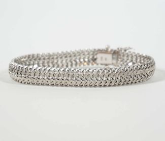 gebürstete Oberfläche, Steckschließe mit zwei Sicherheitsbügeln, L. 19,5 cm, MZ, Beschau, ca 25,7gr 750er WG