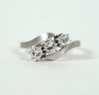 zentral 3 Brillanten, Krappenfassung, à ca 0,15ct, H/I, VS2, MZ, Beschau, ca 4,88gr 750er WG total, Ringgröße 56