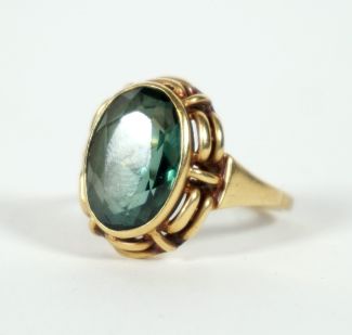 Turmalin, Ovalschliff, Korbkopf, MZ, Beschau, ca 4,53gr 585er GG total, Ringgröße 52