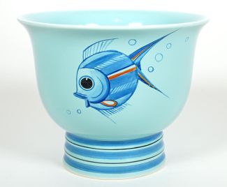 Art Deco-Epoche, Porzellan, Monogr. W. M. K. (Willi Münch-Khe?), hellblauer Fond, Handmalerei eines Korallenfisches, über Glasur monogr., ca. 13,5 x 17 cm
