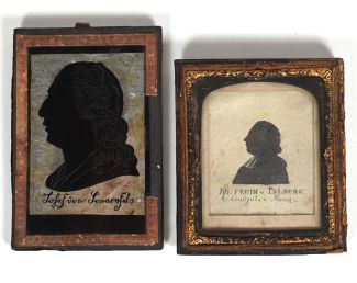 Konvolut von 2, 19. Jh., bestehend aus: Scherenschnitt von Karl Theodor von Dalberg, bez „RH: Freih v Dalberg Coadjut v Meinz“, in Daguerreotypierahmen (dieser besch), 9,5 x 8 cm und Hinterglasmalerei von Josef von Sonnenfels, 10,8 x 7,3 cm, Rahmen min besch