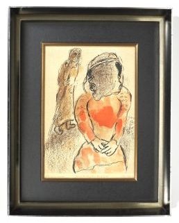 Farblithografie, „Tamar, die Schwiegertochter Judas/Tamar the daughter in law of Judah“, links und rechts unten bez, mittig betitelt, Blattmaß 35,5 x 26 cm, montiert, hinter Glas, HR