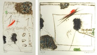 Zwei Carborundum-Drucke, je abstrakte Komposition, links unten numm je 29/75, rechts unten sign., Blattmaße je 24 x 21,5 cm, Passepartoutmontage