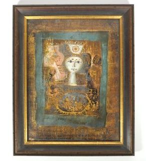 Mischtechnik Farblithografie/Blattgold/Papier, Porträt, mittig sign., 36,5 x 27,5 cm, hinter Glas, HR