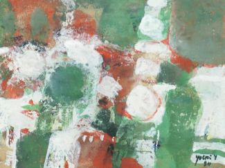 , Gouache/Papier, Komposition, unten rechts sign u. dat. (19)84, ca. 12 x 16,5, Distanzpassepartout, hG, Silberleiste
