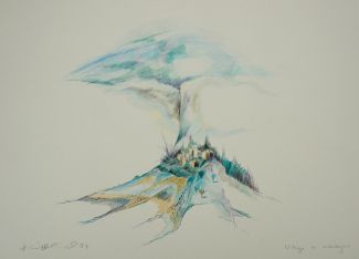 Buntstiftzeichnung, „Village en montagne“, links unten sign und dat (19)87, rechts unten betitelt, Blattmaß 30 x 40 cm, leichter Lichtrand