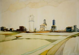 Öl/Lw., „Baron“, Französische Gemeinde bei Bordeaux, verso betitelt und dat 1964, unsigniert, 70 x 100 cm, Schattenfugenrahmen, tlw Krakelee sowie Abplatzer in der Malschicht