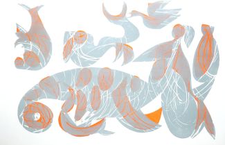 Farbholzschnitt, „Quelle (Tritone)“, rechts unten sign., Blattmaß 88 x 57 cm, Kartonmontage