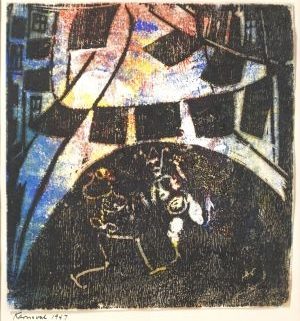 Monotypie, „Karneval“, unten links betitelt sowie dat 1947, hinter Blatt bezeichnet, Blattmaß 27 x 25 cm, Passepartoutmontage