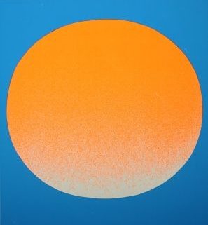 Farbseriegrafie, „Orange auf Blau“, unten links numm 82/100 und unten rechts sign., Blattmaß 44 x 39 cm, kl. Kratzer in Farbschicht
