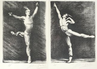 Lithographien, Paar von 2, Rudolf Nurejew im Tanz, je unten links num 3 bzw. 17/35, rechts signiert, Plattenmaß ca. 40 x 27,5 cm, hinter Glas, Silberleiste