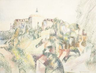 Petr, tschechischer Künstler 1. Hälfte 20. Jh., Farbkreide/Papier, Schloss in Böhmen, unten rechts sign., 50 x 65 cm,