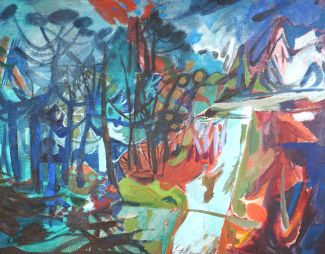 Öl/Rupfen., „Montagnola I“, mittig monogr und dat (19)61, verso sign, betitelt sowie dat., verso Ausstellungsetikett Haus der Kunst/München 7. Juni – 1. Oktober 1961, 80 x 100 cm, HR der Zeit dazu Rechnung Museum Allerheiligen Schaffhausen 1966 sowie Dankesbrief des Künstlers in Kopie