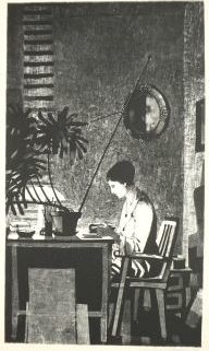 Lithografie, „Abendliches Studium“, unten rechts sign und dat (19)58, verso betitelt und bez., Blattmaß 61 x 43 cm, gebräunt