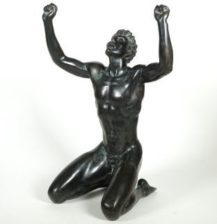 Bronze, schwarz patiniert, Zehnkämpfer Jürgen Hingsen, aus Olympia-Zyklus, Ritzsignatur, dat. 1983, num. 2/12, Gießereistempel Herbert Schmäke/Düsseldorf, ca. 52 x 37,5 x 28,5 cm