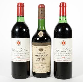 2 Flaschen Château La Fleur, Saint-Emilion Grand Cru 1982, dazu 1 Flasche Château Meyney, Prieuré des Couleys 1964, wurde fachgerecht gelagert, Genießbarkeit kann nicht garantiert werden