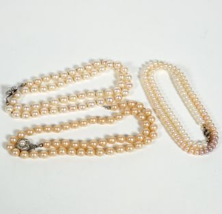 Konvolut von 3, 1x 835er Silberschließe, L. 47, 40 und 42 cm, 1x Schließe defekt