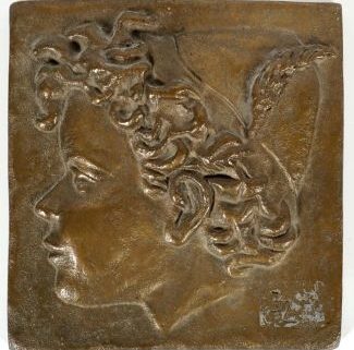 Monogrammist JZ, Bronze, Junge mit Lockenkopf im Profil, unten rechts monogr., 17 x 17 cm