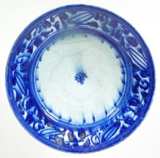 wohl Persien, 19.Jh., Fayence, unterglasurblaue Malerei, in der Fahne stilisierte vergetale Bordüre, Dm ca. 21,5 cm, Krakelee
