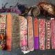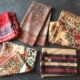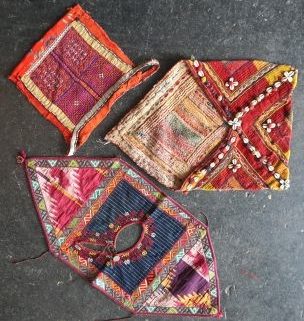 Konvolut von 3, Zentralasien, Lätzchen und 2 Taschen, alt, 27x 27 bzw. 33x 37 bzw. 74x 34cm, Gebrauchsspuren, tlw. besch.