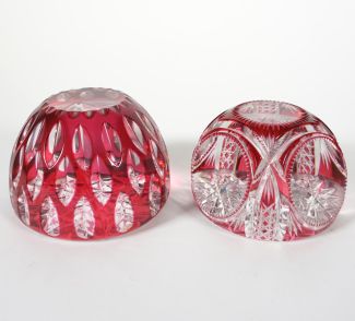 Konvolut von 2, Val St. Lambert, Werk Seraing, Belgien, ca. 1900-1030, je Overlay- Paperweight mit reichem Schliffdekor, je min. altersbedingte Gebrauchsspuren (ex Coll. Peter v. Brackel)