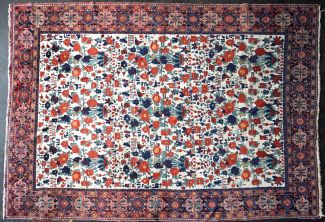 Iran, Rosen-Afshar, handgeknüpft, 221x 153cm, ca. 3,3 qm, Fransen gekürzt, Gebrauchsspuren