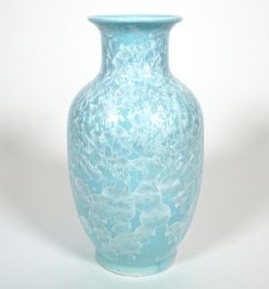 China, Porzellan, 1920er/30er Jahre, himmelblauer Font, Kristallglasur, blaue Stempelmarke unter Glasur, H 26 cm