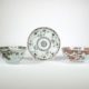 China, um 1800, Porzellan, Famille rose, polychrome Emaillemalerei (minimalst berieben), Felsmalerei, Nelken o. Päonien u. Schriftrollen, Dm. Ca. 7,5 bzw. 11,7 cm, ca. Koppchen randig ausgefranst