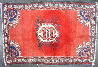 alt-antik, Persien, handgeknüpft, Fransen teilweise abgelaufen, ca. 87 x 126 cm = ca. 1,1 m²