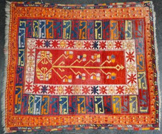 Konja, antik, handgeknüpft, Fransen ungleichmäßig abgelaufen, ca. 100 x 88 = ca. 0,88 m²
