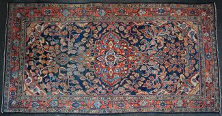Maschad, antik, handgeknüpft, Flor teilweise abgelaufen, fleckig, Fransen gleichmäßig beschnitten, ca. 282 x 147 cm = ca. 4,15 m²