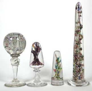 Konvolut von 4, ca. 1880-1925, wohl u.a. Val St. Lambert, Werk Lüttich u. Cheneé/Belgien, versch. Formen u. Dekore, darunter Stalagmitenform u. Blasen, H von ca. 12,5 bis 30,5 cm, minimalste altersbedingte Gebrauchsspuren (ex Coll. Peter v. Brackel)