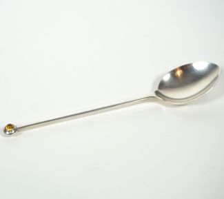 für Carl Hugo Pott/Solingen, Teelöffel, Modell 86, endig gelber Farbsteincabochon, MZ, Beschau, ca 15gr 925er Silber
