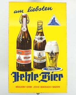 1950er Jahre, flach, Brauerei Gebr. Jehle Biberbach/Baden, 48 x 31 cm, randig tlw leicht besch, Zustand: 2