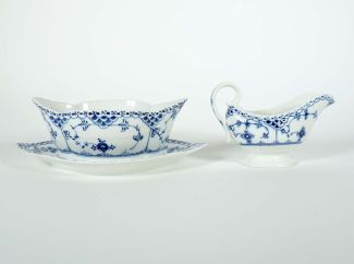 Konvolut von 2, Porzellanmanuf Royal Copenhagen, Dekor Musselmalet Halbspitze gerippt, je blaue Wellen- und grüne Stempelmarke unter Glasur