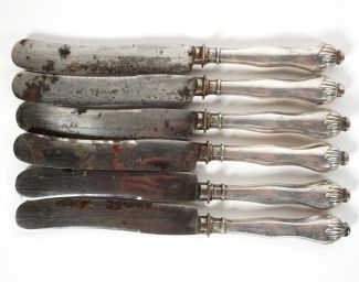 Berlin, späte Biedermeier-Epoche, Mstr. GH, Satz von 6, MZ, Beschau, 13 lötige Silbergriffe, gewichtet, Stil taillier, Godronierung, genast