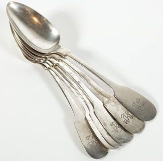 Satz von 6, Spatendekor, Eigentümermonogr. u. Datum, MZ, Beschau, ca. 258g 800er Silber