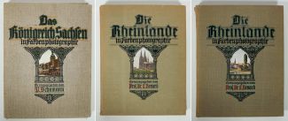2 Bd., aus Reihe Deutschland in Farbenphotographie, Hrsg. P. Schumann bzw. Prof. Dr. E. Renard , Verlag C. Weller/Berlin – Köln 1916 + 1921/22. Mappen je polychrom geprägte Leineneinbd., je 40 Fototafeln, Textbd. 104, 96 + 100 S., ca. 37,5 x 30 cm, Einbd. mit Gebrauchs- u Lagerspuren