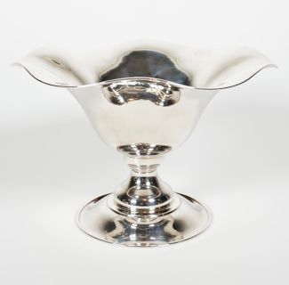 Manuf Zaramella/Padua, Trompetenstand, Kurzschaft, Kraterkuppa mit gewelltem Rand, MZ, Beschau, ca 402gr 800er Silber, 15 x 23,5 cm