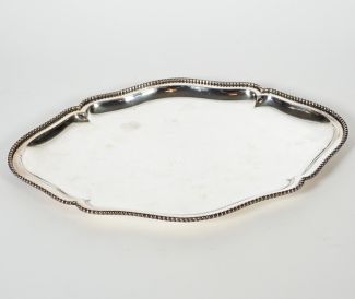 Manuf. Wilhelm Binder/Schwäbisch Gmünd, Barockstil, ovaler vierfachpassig geschweifter Rand mit Perlstab, MZ, Beschau, ca. 500g 800er Silber, ca. 33,5 x 23,5 cm
