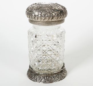 Deutsch, späte Historismus-Epoche, Rokokostil, Kristallkorpus, im Klappdeckel u. Boden 800er Silberblech mit Rocaillerelief, Innenvergoldung, MZ, Beschau, H 15 cm
